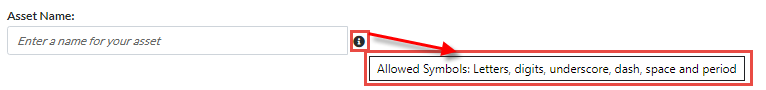 If you attempt to upload an asset with an unsupported symbol/character, you will receive a message informing you of the error.
