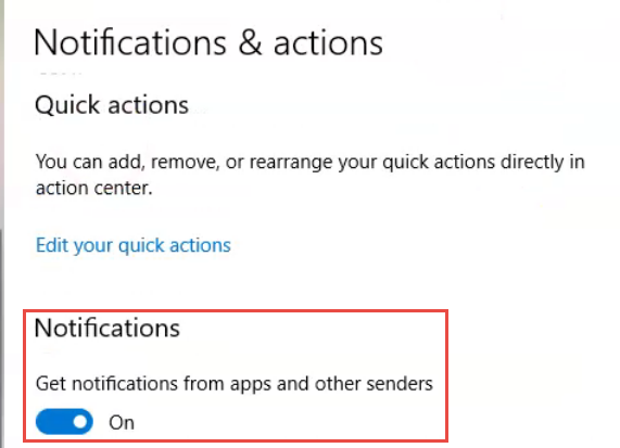 - Under Notifications slide the "Get notifications from apps and other senders" to the On position