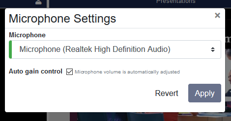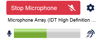 Once you allow your microphone, the "Test Microphone" changes to "Stop Microphone" and the microphone is enabled. Begin speaking to test if your voice is detected. If the microphone is working, you will see the green bar fluctuate.