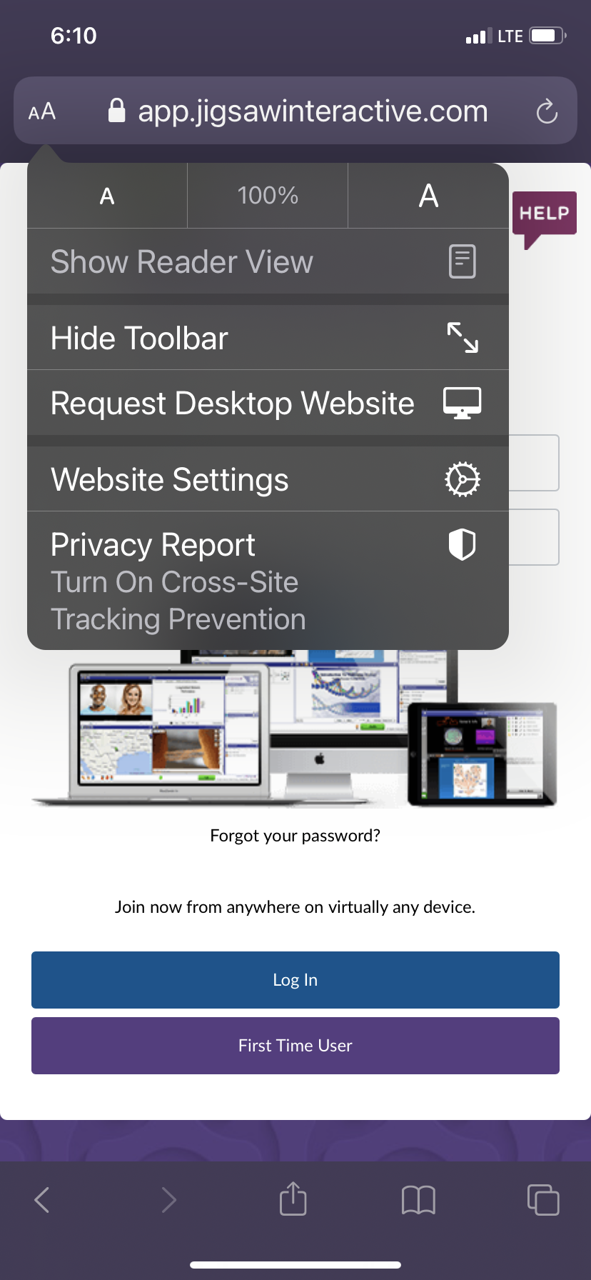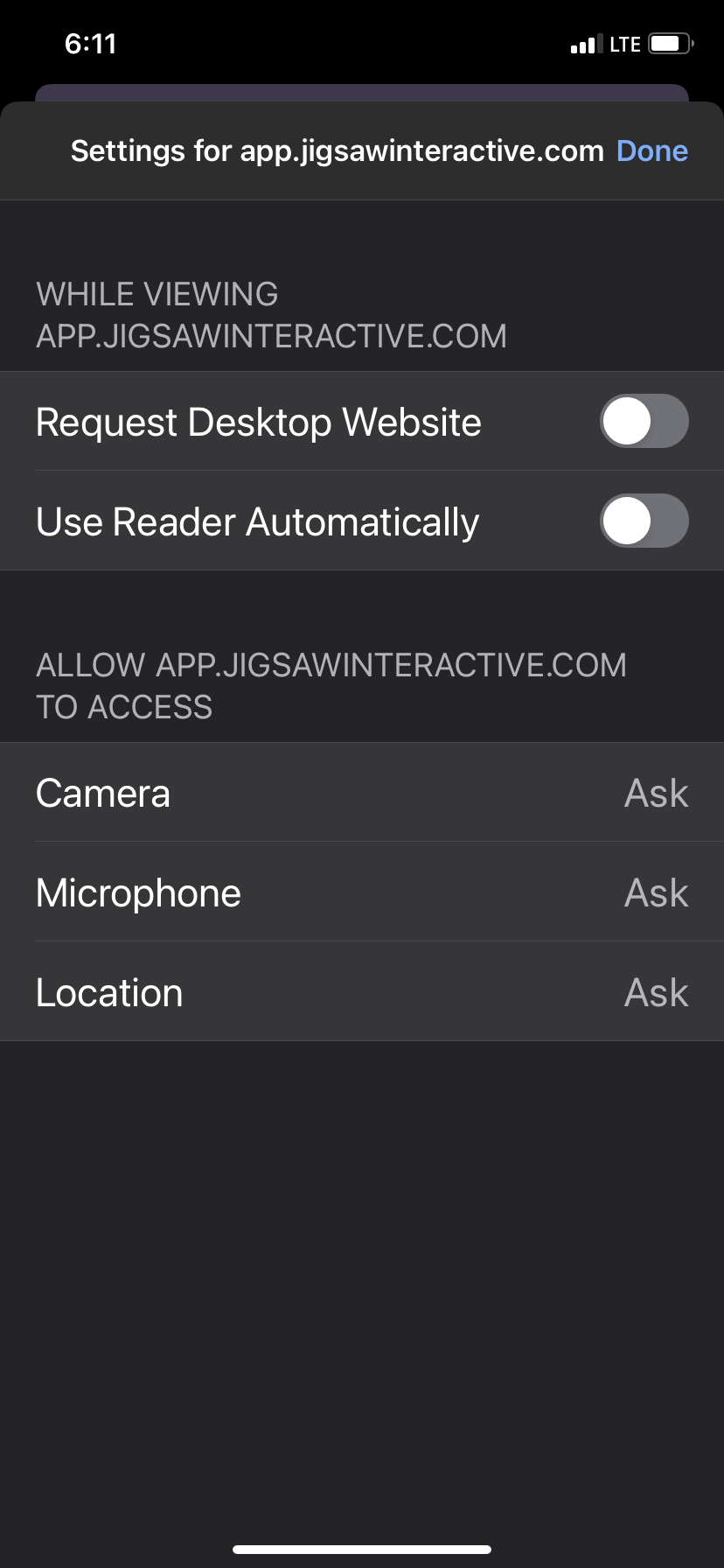 Each browser has unique settings that can be enabled when using your camera and microphone within the browser. To ensure a seamless experience between Safari and Jigsaw, "allow" your camera and microphone within the browser settings.