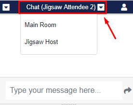 The Chat window will change to show that you are now direct chatting with the person selected. Use the drop down arrow to toggle between the Main Chat room and direct chats.