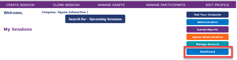 The Jigsaw Company Admin will be able to access Dashboard using the blue Dashboard button.