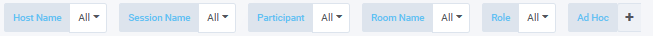 You have the ability to filter the Dashboard data by Host Name, Session Name, Participant, Breakout Room Name and by Role (Host, Presenter, Moderator, Attendee)