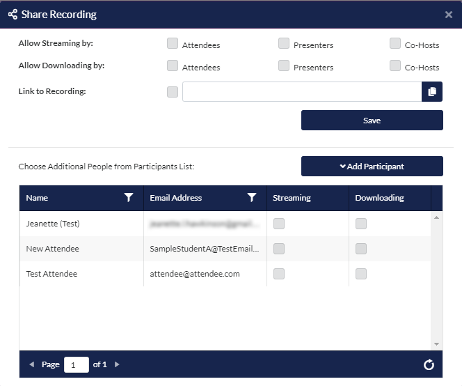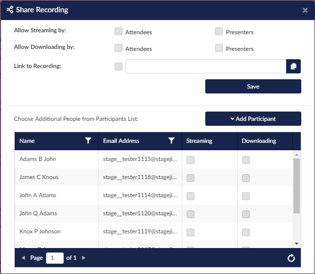 You can also individually choose participants to allow the option to stream or download. The recording will then show up under the Participant's Recorded tab.
