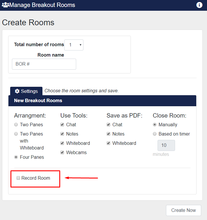 Breakout Room recordings also appear under Recorded Sessions. There are two ways to record in a breakout room.