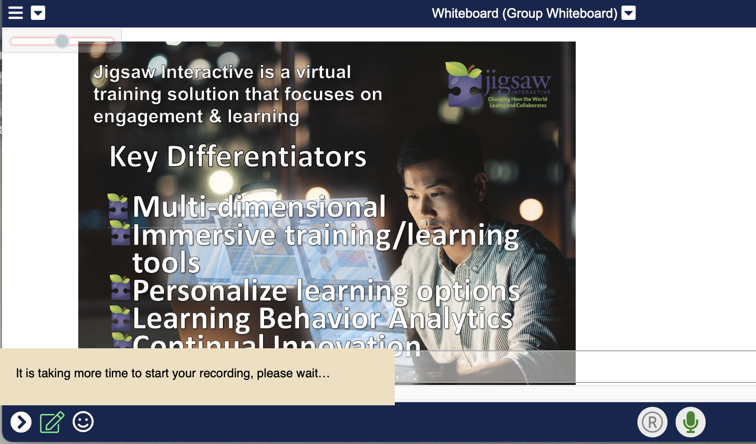 4. If the recording has not started within 30 seconds, you will receive a notification that the process is taking longer than expected. The system continues to alert you every 30 seconds, until the recording starts.