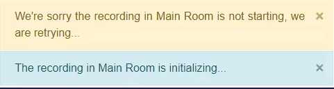 - If the Session Side Recording fails to start in the Main Room and the Host/Co-Host is located in the Main Room, they will receive the following notification: