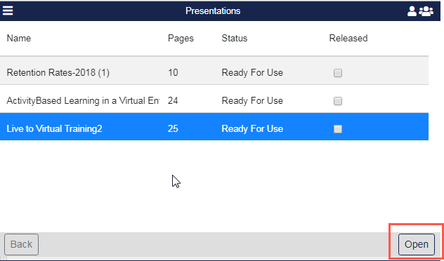 Note: To release a Presentation for attendees to view on their own, click the box under the Released column.