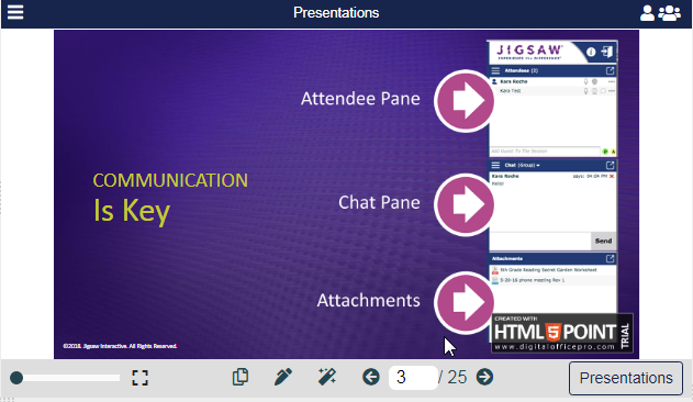 The attendee is able to view the presentations the host is sharing.