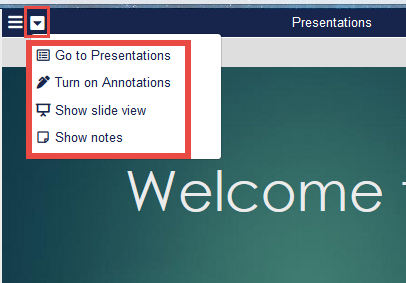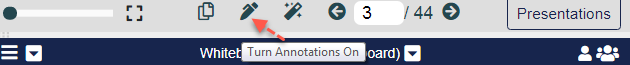 Click the Presentations menu (down arrow) and select Turn on Annotations to enable annotations.