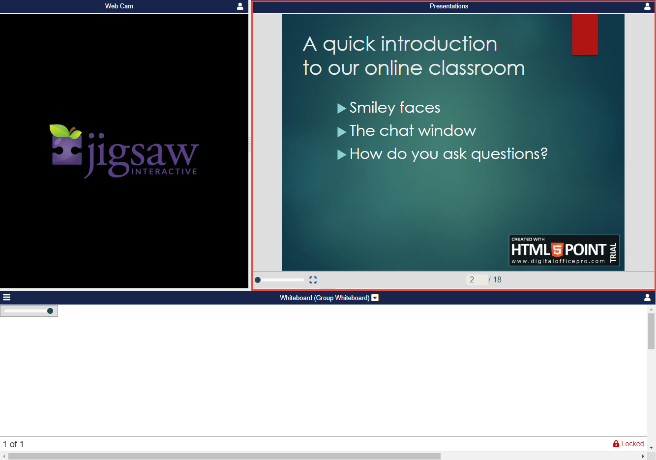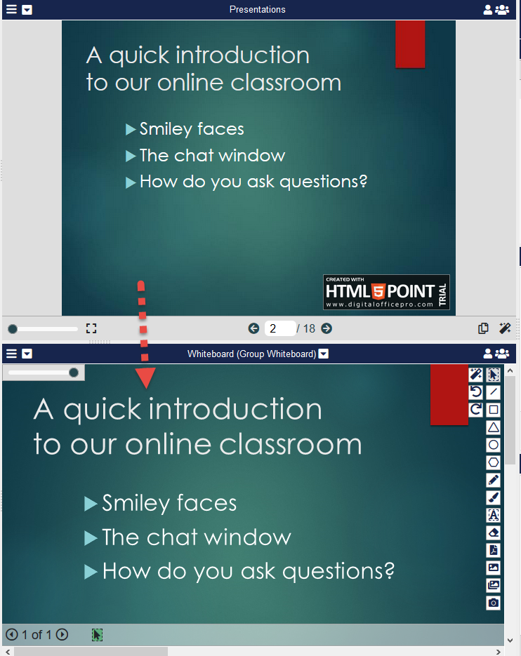 The slide will appear as a copied background on the Whiteboard (Pane 4).