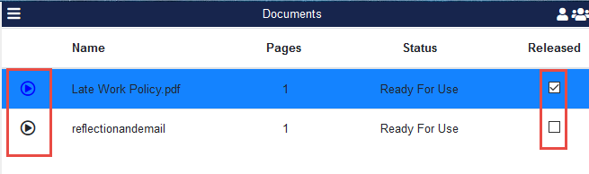 Note: To release a document for attendees to view on their own, check the box for that document under the Released column.