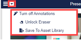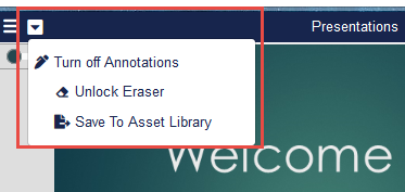 The Host or Co-Host can also choose to save the annotated presentation to the Asset Library. Go to the Presentation Menu and select Save to Asset Library.