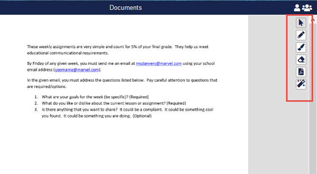 To use the laser pointer on a Document, click the Laser Pointer icon in the bottom right of Pane 2 when the document is open.
