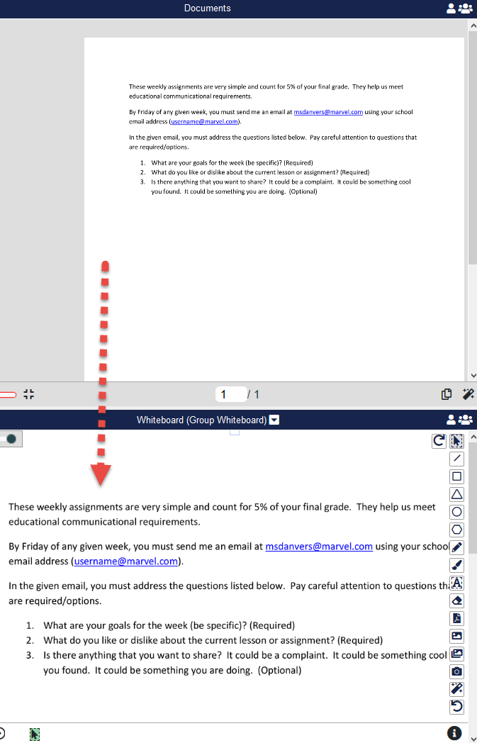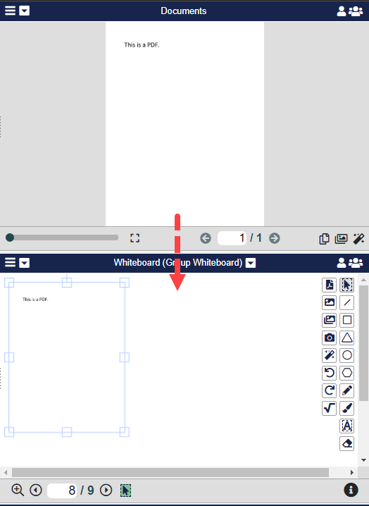When working with Documents, the Host or Co-Host can copy a page from the document to the Whiteboard as an image. This will allow attendees more options to collaborate.