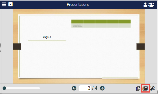 The user icon in the top-right corner can be used to "Maximize Me". This will make this pane full screen. Along the bottom, attendees can zoom in and out of the current slide and see what number slide they're on.