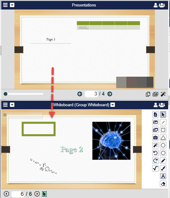 The page will appear as a copied image in the Whiteboard (Pane 4).