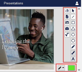 When unlocked, the attendee will have annotation tools that allows drawing, highlighting, and writing on the presentations.