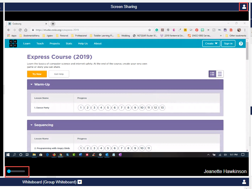 - Use the Copy to Whiteboard feature to drop a screenshot onto the Group Whiteboard