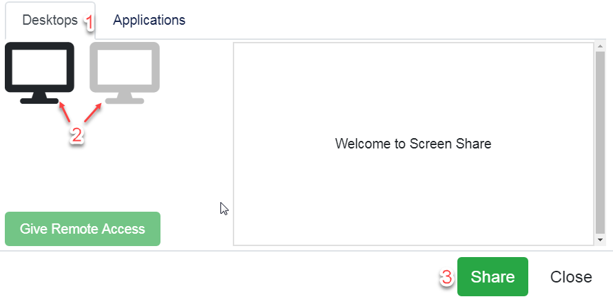 2. The attendee will need to share their desktop by clicking the green "Share" button.