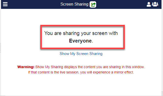 Note: If the person sharing decides to click "Show My Screen Sharing, they will then see what is being shared.