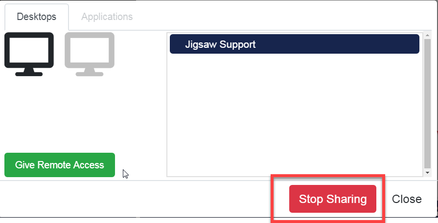 5. Once remote access has been given, the person who gave the access will see the "Give Remote Access" button in red and the red “Stop Sharing” button.