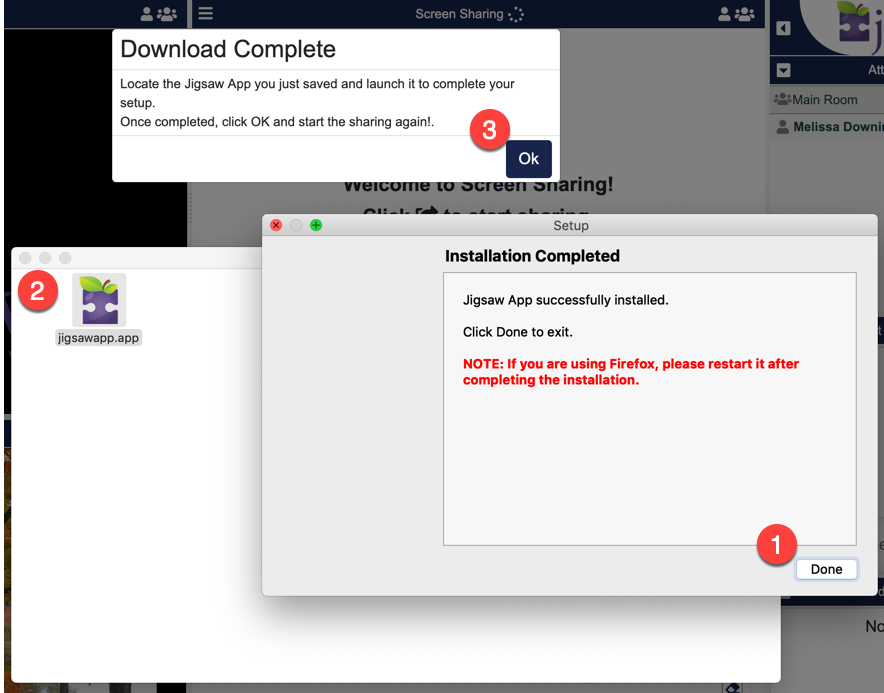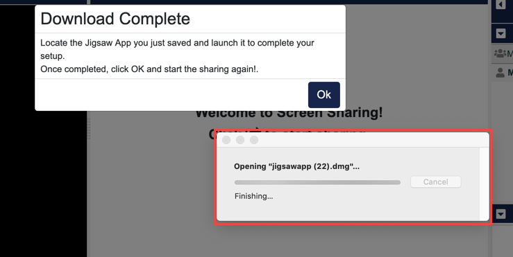 The Sharing Screen to select Browser Screen Sharing and Jigsaw App will appear for you to select the mode of sharing you need.