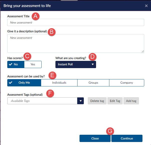 2. Enter a Title, a Description (optional), and any points if a scored Assessment.