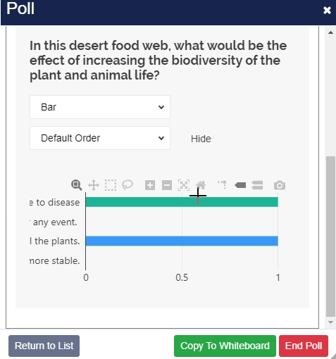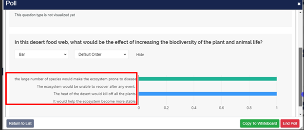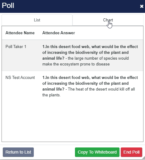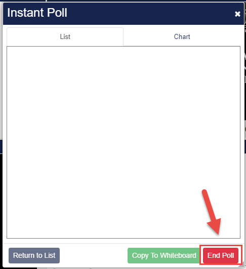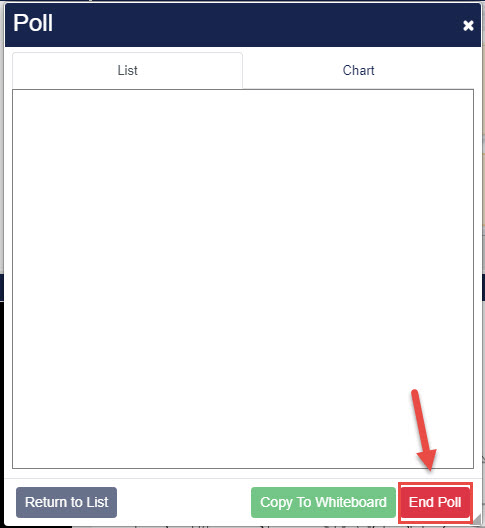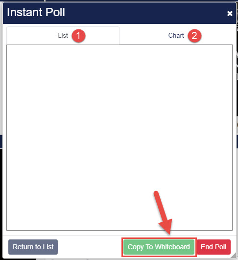 - Click Copy To Whiteboard while on the List tab to show text results of the Poll.