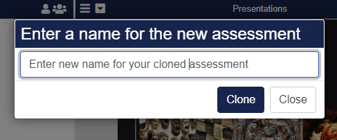 2. Enter a new name for the cloned Assessment. Then click Close.