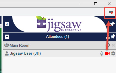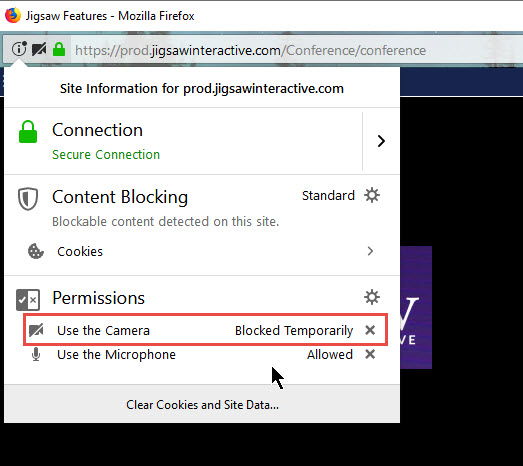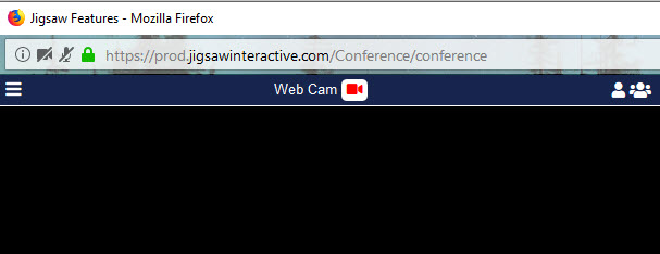 3. Click the small camera icon with a red x in the upper right-hand corner of the browser window where Jigsaw is visible. (It could appear as a camera even if it is your Mic that is not working.)